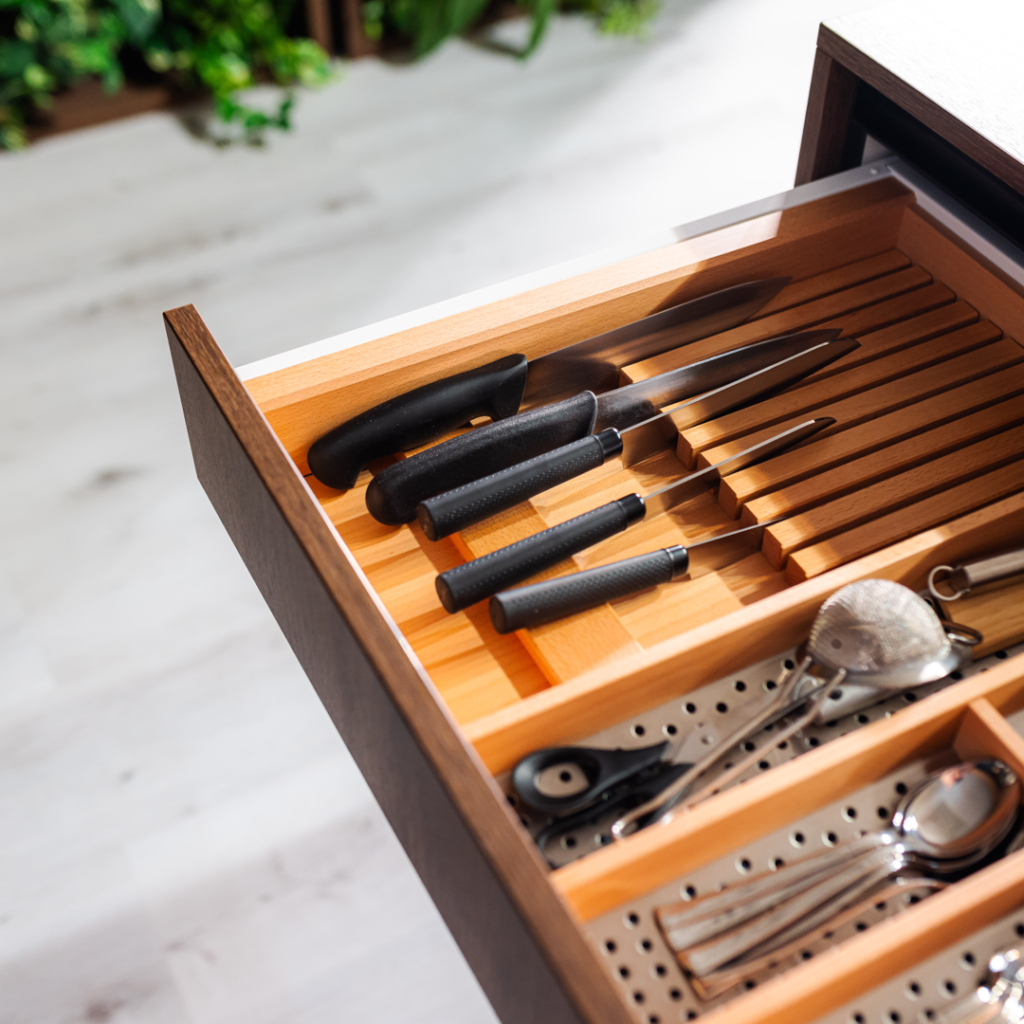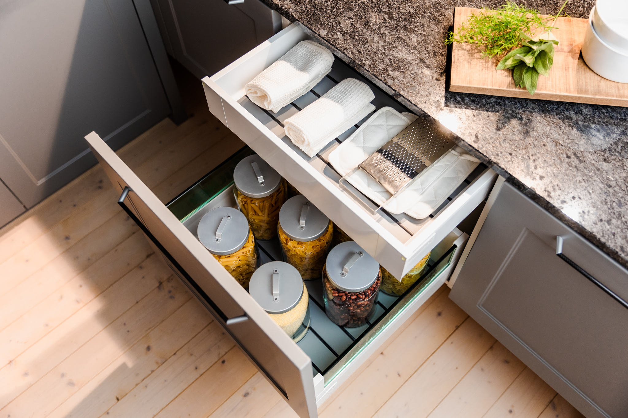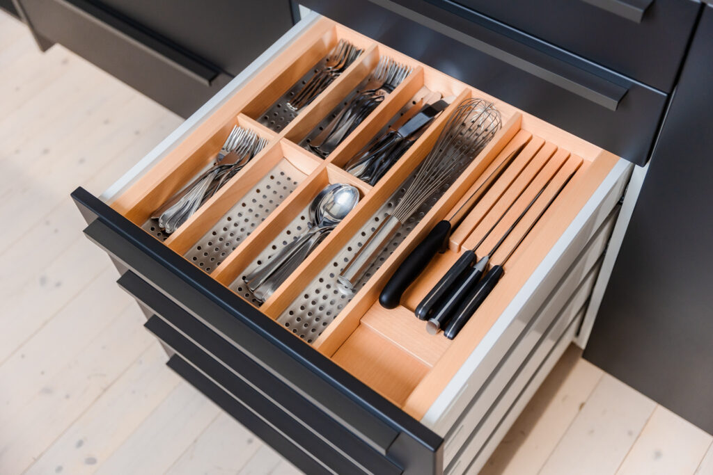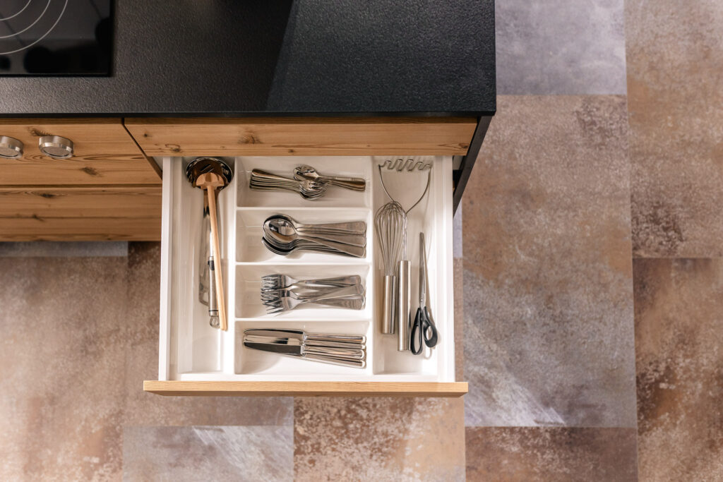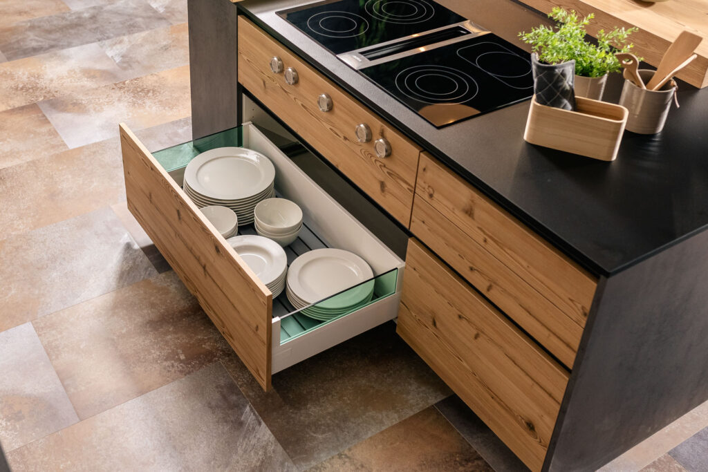 Bez obzira na to slažete li pribor za jelo i posuđe, hranu i začine ili integrirane električne uređaje, unutrašnjost DAN kuhinje nudi bezbroj organizacijskih mogucnosti. S toliko kuhinjskih ideja vaša kreativnost je neograničena.